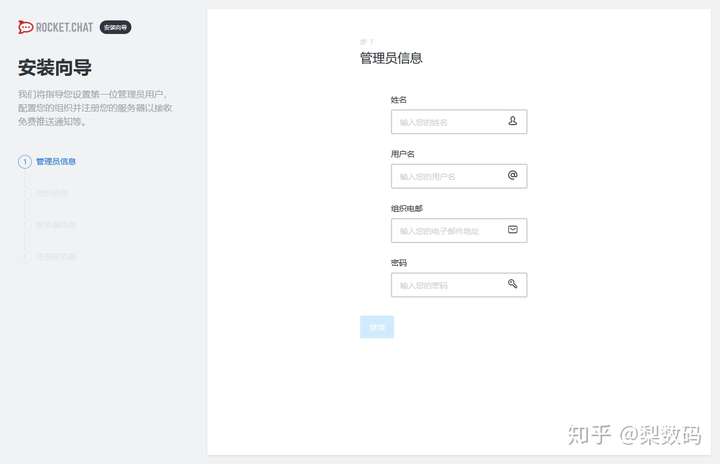 systemctl enable rocketchat && systemctl start rocketchat安装完之后就可以退出容器了,然后浏览器访问物理机 IP:3000 端口,即可看到 Rocker.Chat 主程序设置界面了:
