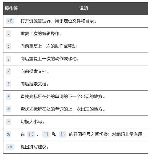 可视模式:Vim 的行为类似于基于鼠标的输入方式,如复制、编辑、替换等。
